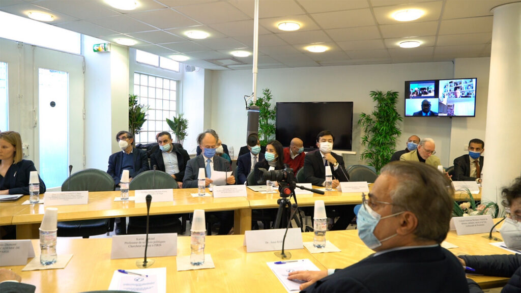 Accueil et présentation biographique de son Excellence Monsieur Alexei Menchkov, ambassadeur de la Fédération de Russie en France par Monsieur Ali Ratsbeen, Président de l’Académie de Géopolitique de Paris. Ce dernier en profite pour exprimer sa gratitude pour l’accueil chaleureux réservé à plusieurs reprises à l’Académie de Géopolitique de Paris par le centre spirituel et culturel russe orthodoxe de Paris.